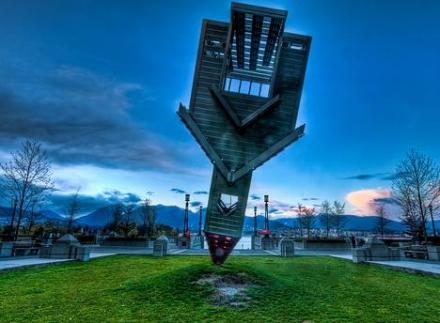 Először a kanadai Vancouverben állították fel ezt az alumíniumból készült installációt, majd elköltöztették Calgary városának egy parkjába. Az amerikai Dennis Oppenheim által megálmodott épület igazi érdekessége, hogy a szerkezet a templomtorony hegyén áll, így a kiegyensúlyozás volt az egyik legnehezebb feladat. Nappal is lenyűgöző, de az esti megvilágítást sem szabad kihagyni.
