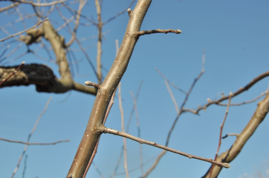 Sima termőnyárs: 5-15 cm-es termővessző csúcsán ennek is vegyes rügy, oldalán fejlett hajtásrügyek.
