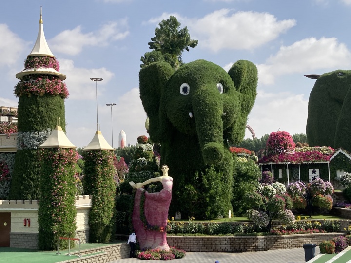 A Dubai Miracle Gardenben a virágokat nem csak azért mutatják be, mert virágok, hanem ezeket a virágokat valamilyen művészeti alkotásba, azaz virágos témákba, topikművészetbe, viráginstallációkba, virágművészetbe, szobrokba, virágágyásokba, virágos cserepekbe, falakba, házakba, autókba, sőt még átjárókba is beépítik.